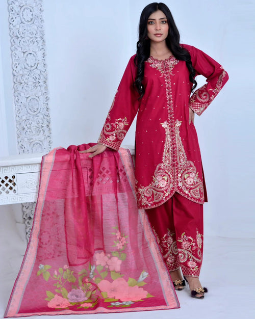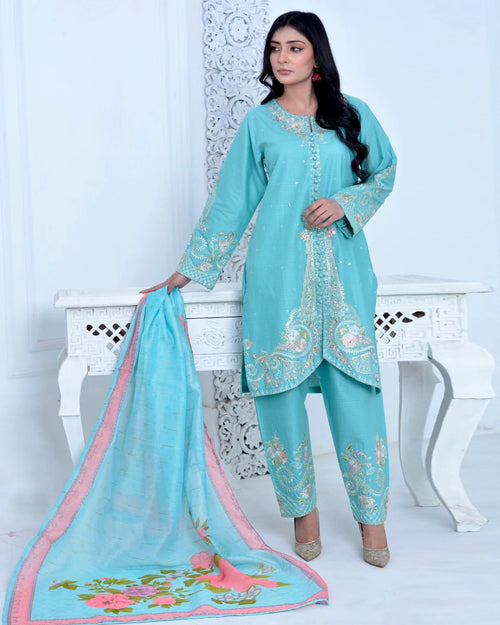 "Diva" Semi Formal Embroidered Three Piece Suits(78272)